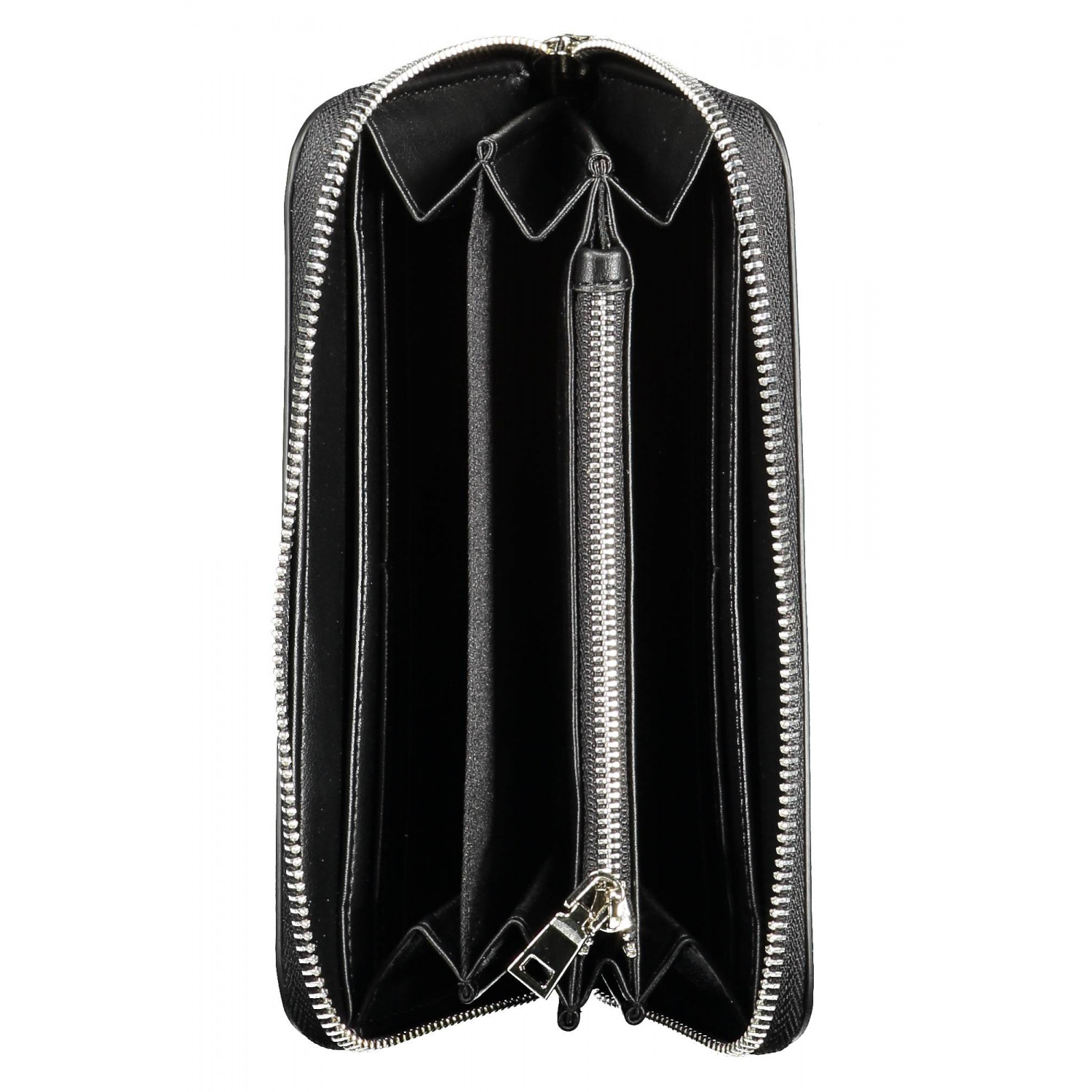 PORTAFOGLIO 5 SCOMPARTI, PORTAMONETE, SPAZI INTERNI FORMATO DA CARD, DETTAGLI A CONTRASTO, CHIUSURA CON ZIP, LOGO