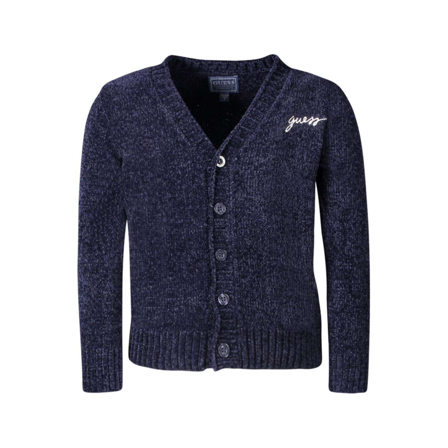 CARDIGAN MANICHE LUNGHE IN CINIGLIA, SCOLLO A "V", BOTTONI, RICAMO, LOGO
