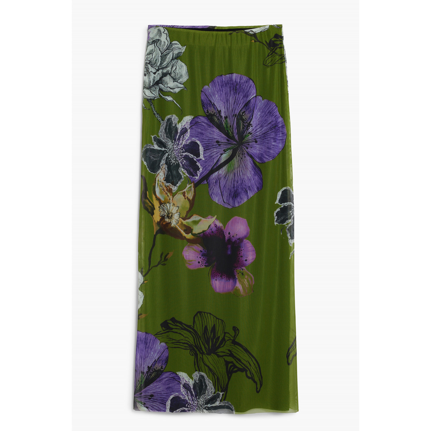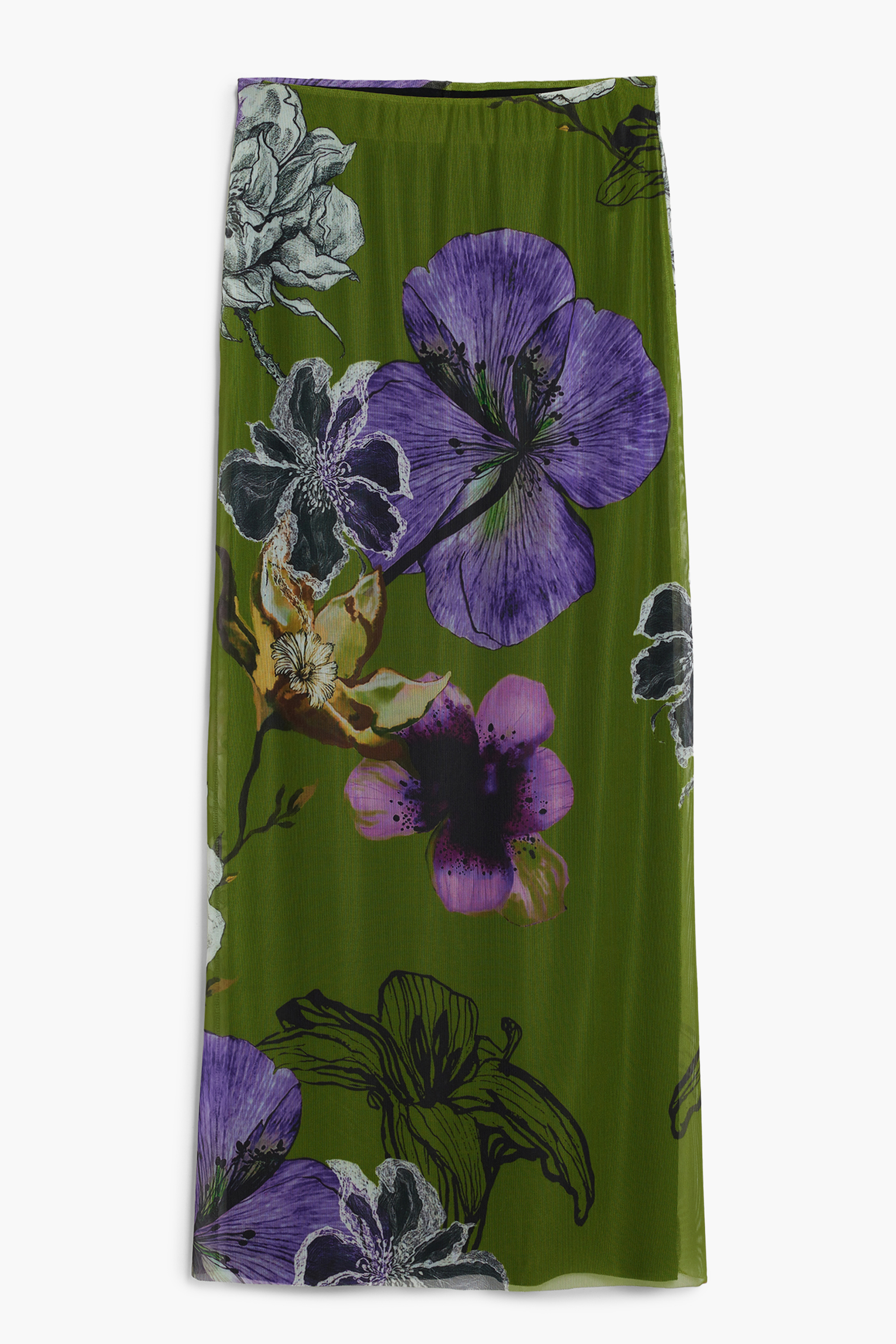 GONNA LUNGA, TULLEFLOWERS, ELASTICO IN VITA, DETTAGLI A CONTRASTO, LOGO
