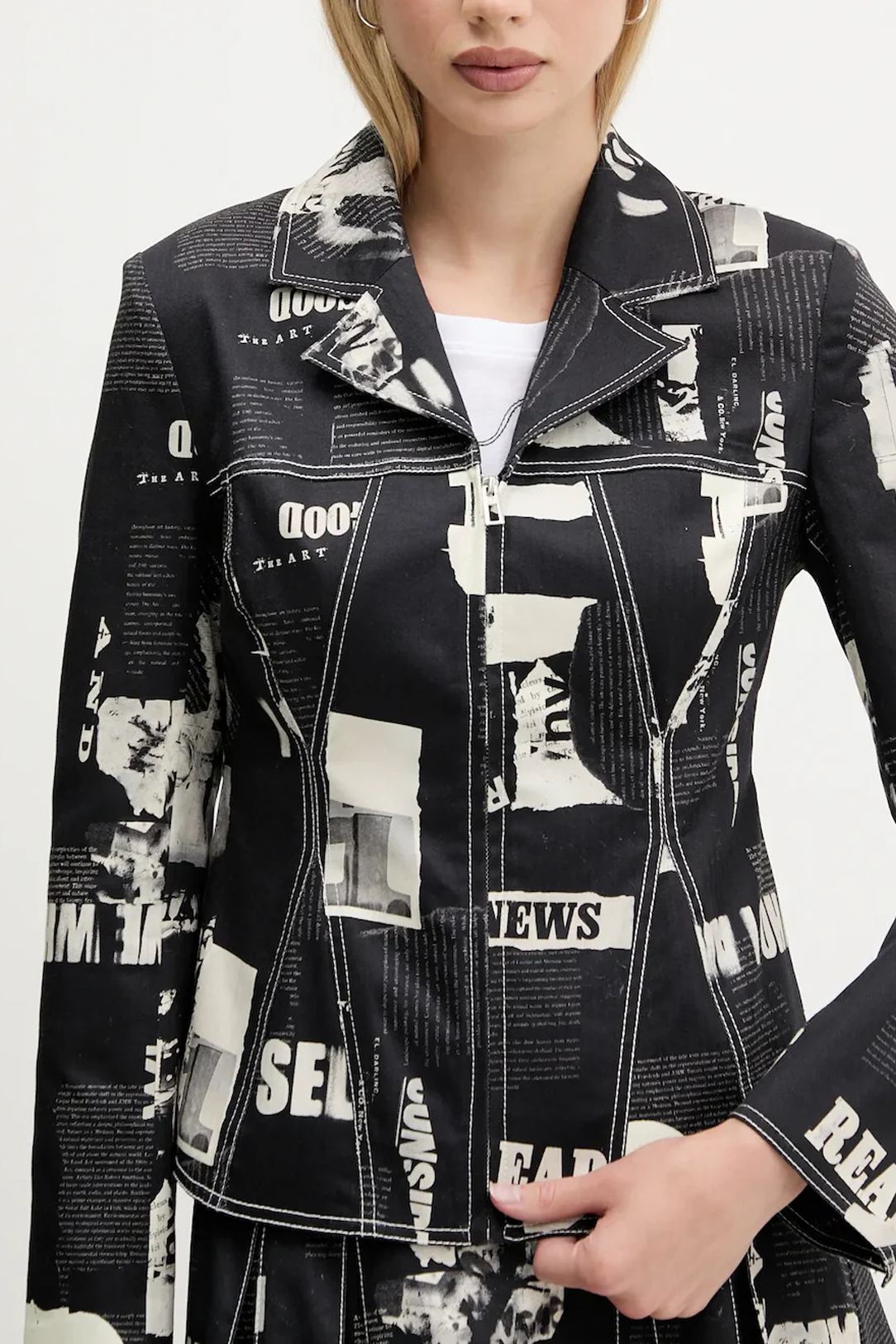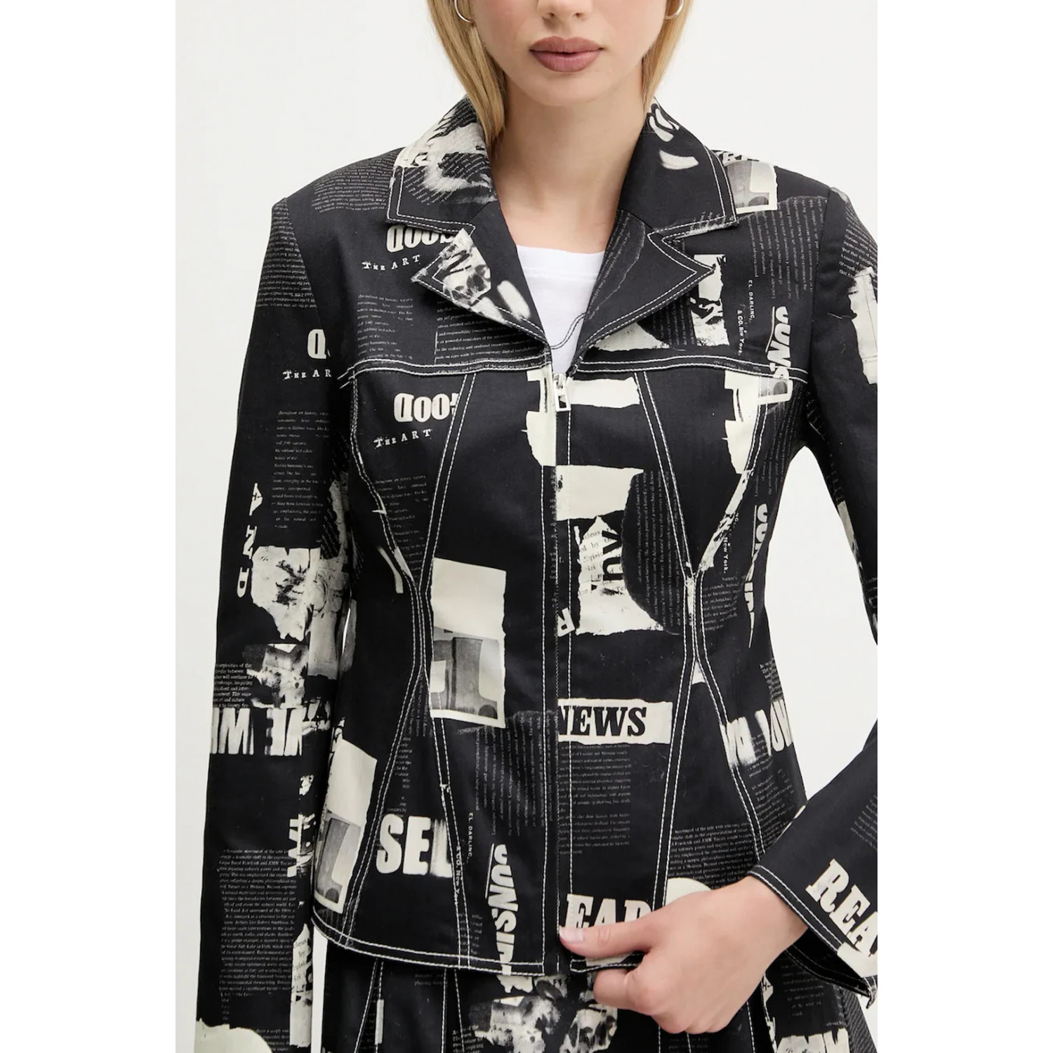 GIACCA SPORTIVA, NEWSPAPER, 2 TASCHE, SCOLLO A "V", DETTAGLI A CONTRASTO, ZIP, LOGO