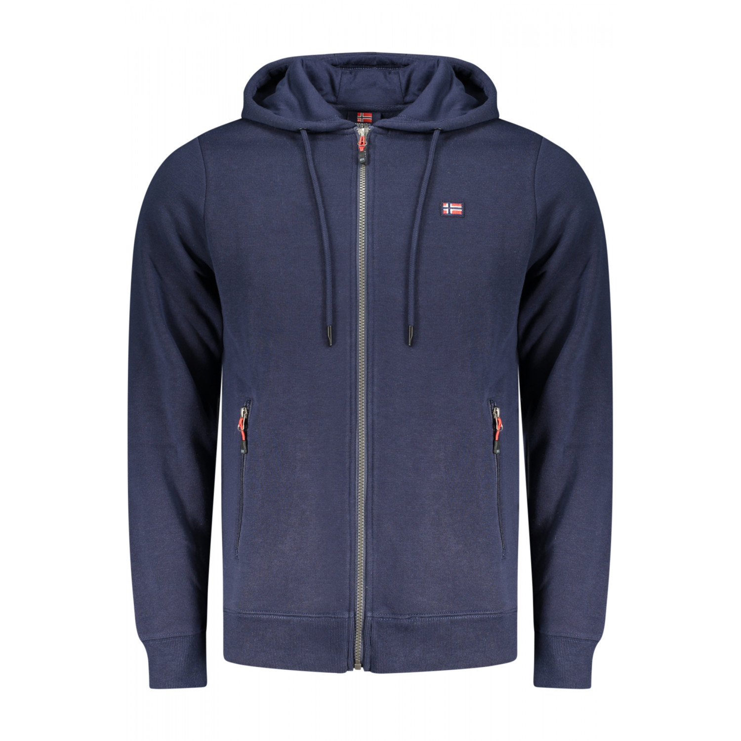 FELPA MANICHE LUNGHE CON CAPPUCCIO, FELPATA, 2 TASCHE CON ZIP, ZIP, RICAMO, LOGO