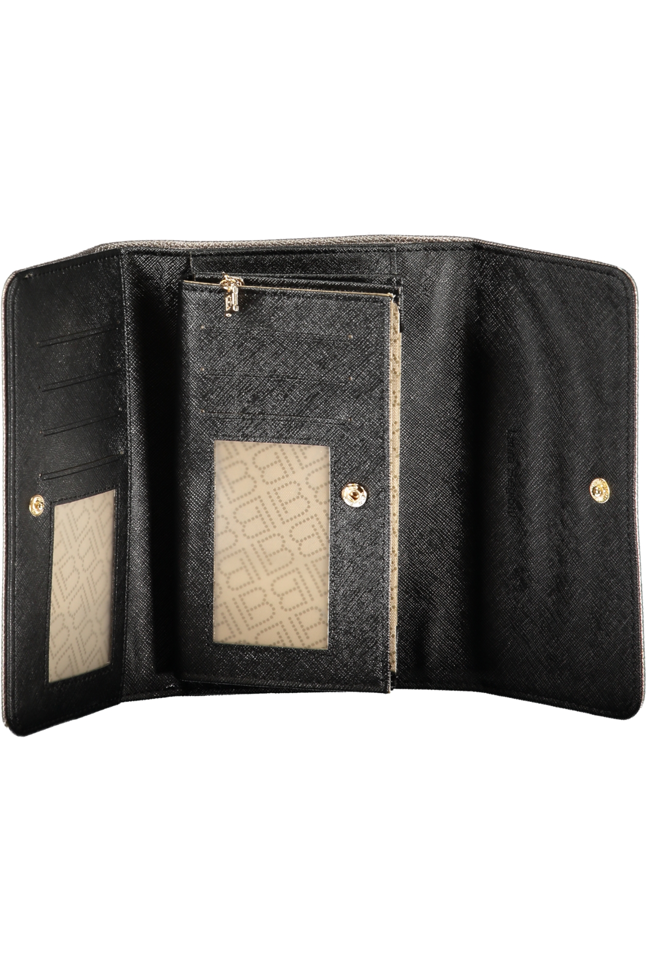 PORTAFOGLIO DISS, 3 SCOMPARTI, PORTAMONETE, DOPPI SPAZI FORMATO DA CARD, DETTAGLI A CONTRASTO, CHIUSURA CON AUTOMATICO, LOGO