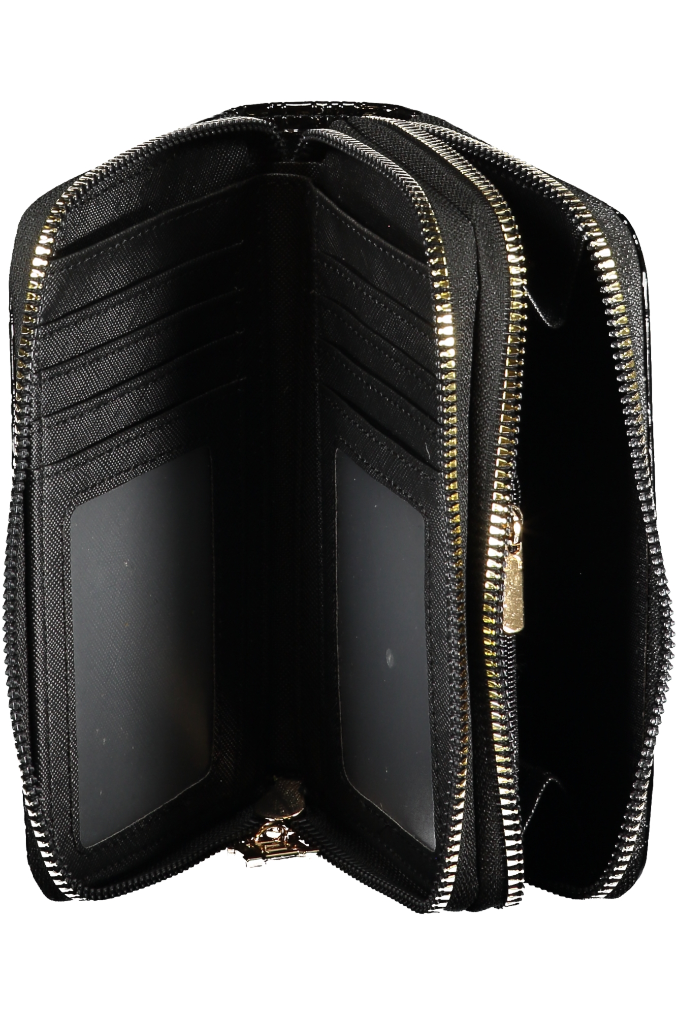 DOPPIO PORTAFOGLIO ARCADE, 3 SCOMPARTI, PORTAMONETE, DOPPI SPAZI FORMATO DA CARD, DETTAGLI A CONTRASTO, CHIUSURA CON ZIP, LOGO