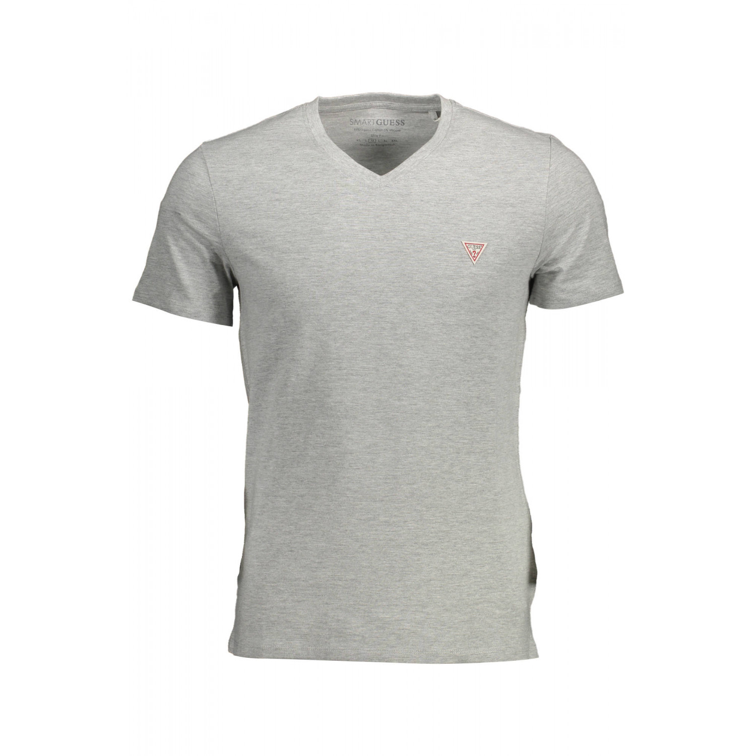 T-SHIRT SLIM FIT, MANICHE CORTE, SCOLLO A "V", APPLICAZIONE, LOGO, 95% ORGANIC COTTON