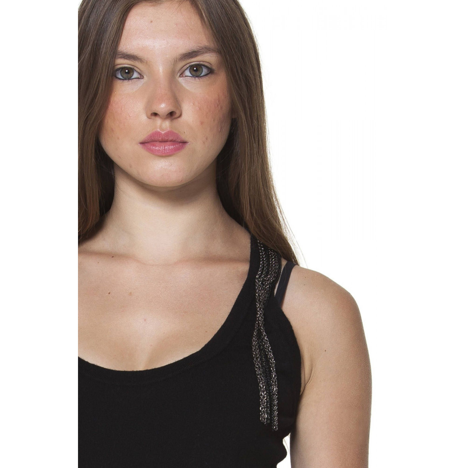 CANOTTA SPALLA STRETTA, SCOLLO TONDO, INSERTI, LOGO