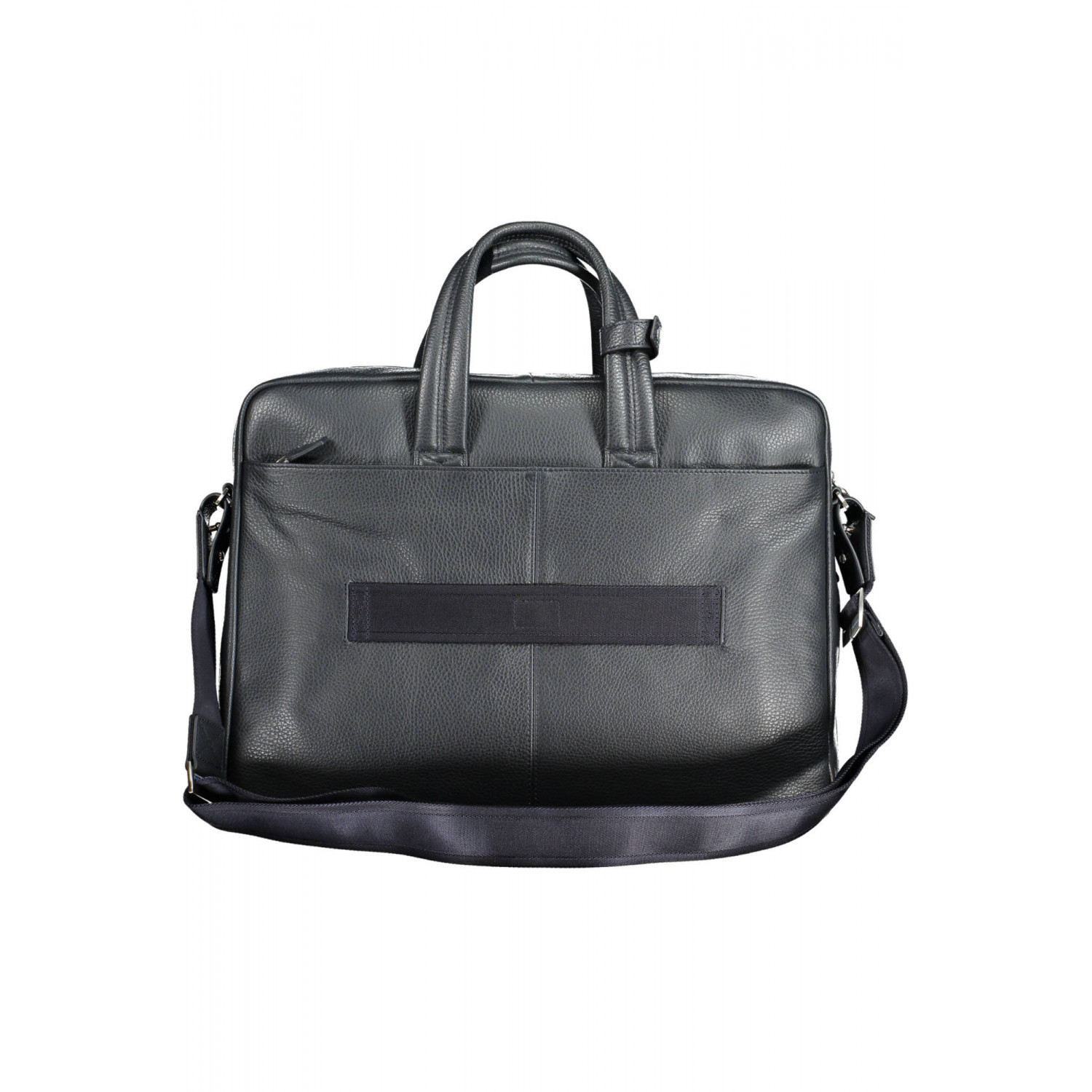 CARTELLA 2 MANICI, TRACOLLA REGOLABILE E REMOVIBILE, 3 TASCHE ESTERNE, 1 SCOMPARTO INTERNO PORTA PC, SPAZI INTERNI PORTADOCUMENTI, PORTAPENNE, DETTAGLI A CONTRASTO, CHIUSURA CON ZIP, LOGO