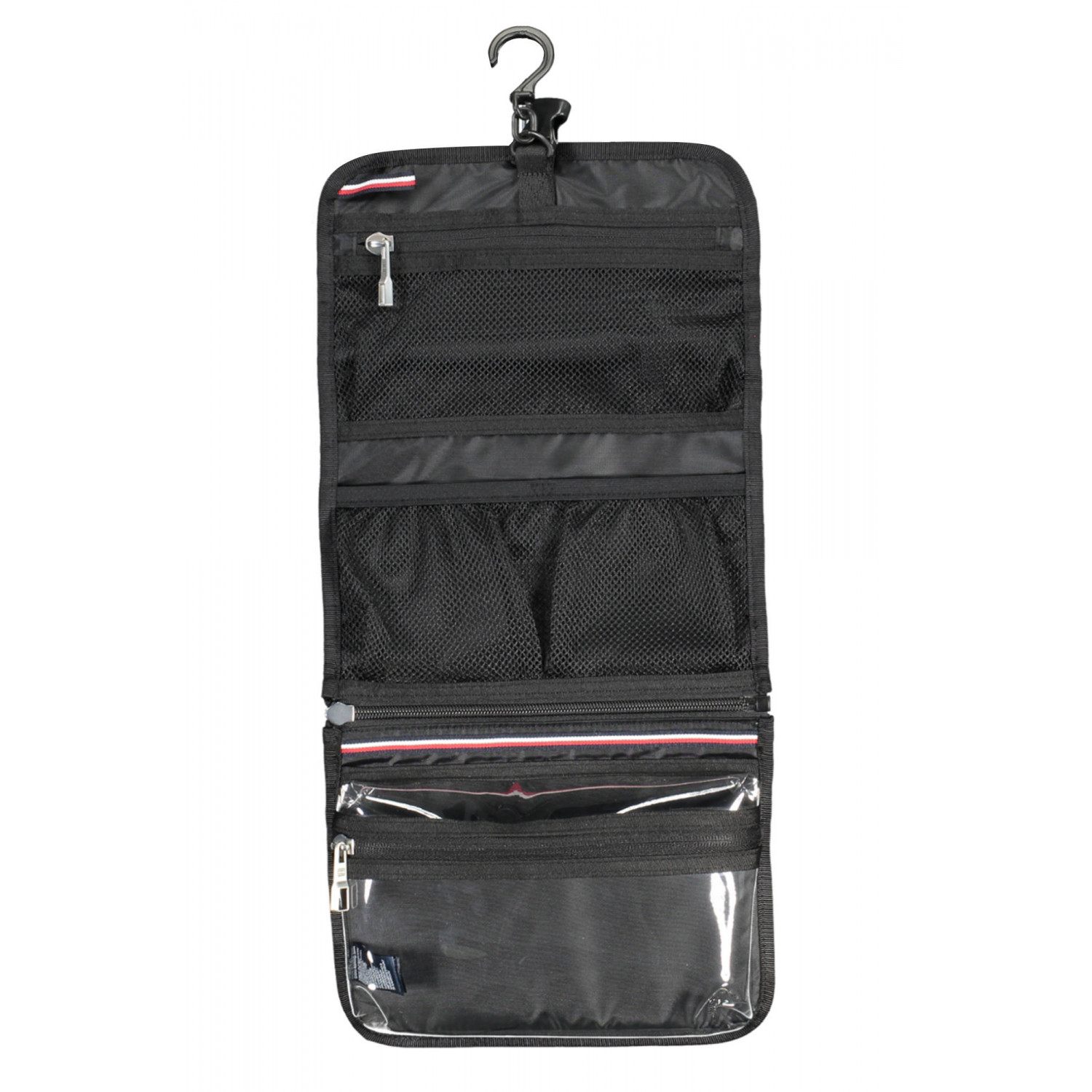 BEAUTY CASE, 3 TASCHE POTA OGGETTI, 1 TASCA SEPARABILE, GANCIO X APPENDERE, DETTAGLI A CONTRASTO, CHIUSURA CON ZIP, A SCATTO E ARROTOLABILE, LOGO, 50% POLYESTER RECYCLED