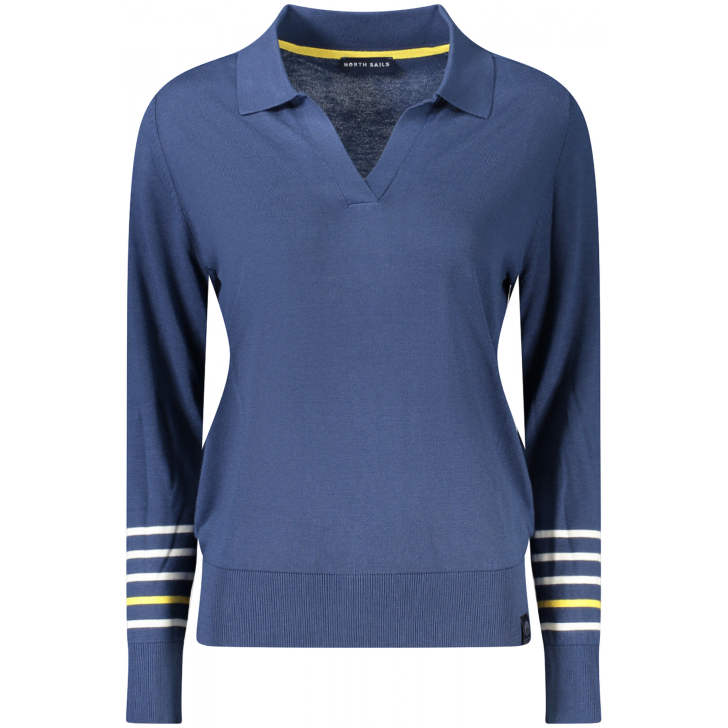 MAGLIA MANICHE LUNGHE, SCOLLO A "V", DETTAGLI A CONTRASTO, LOGO