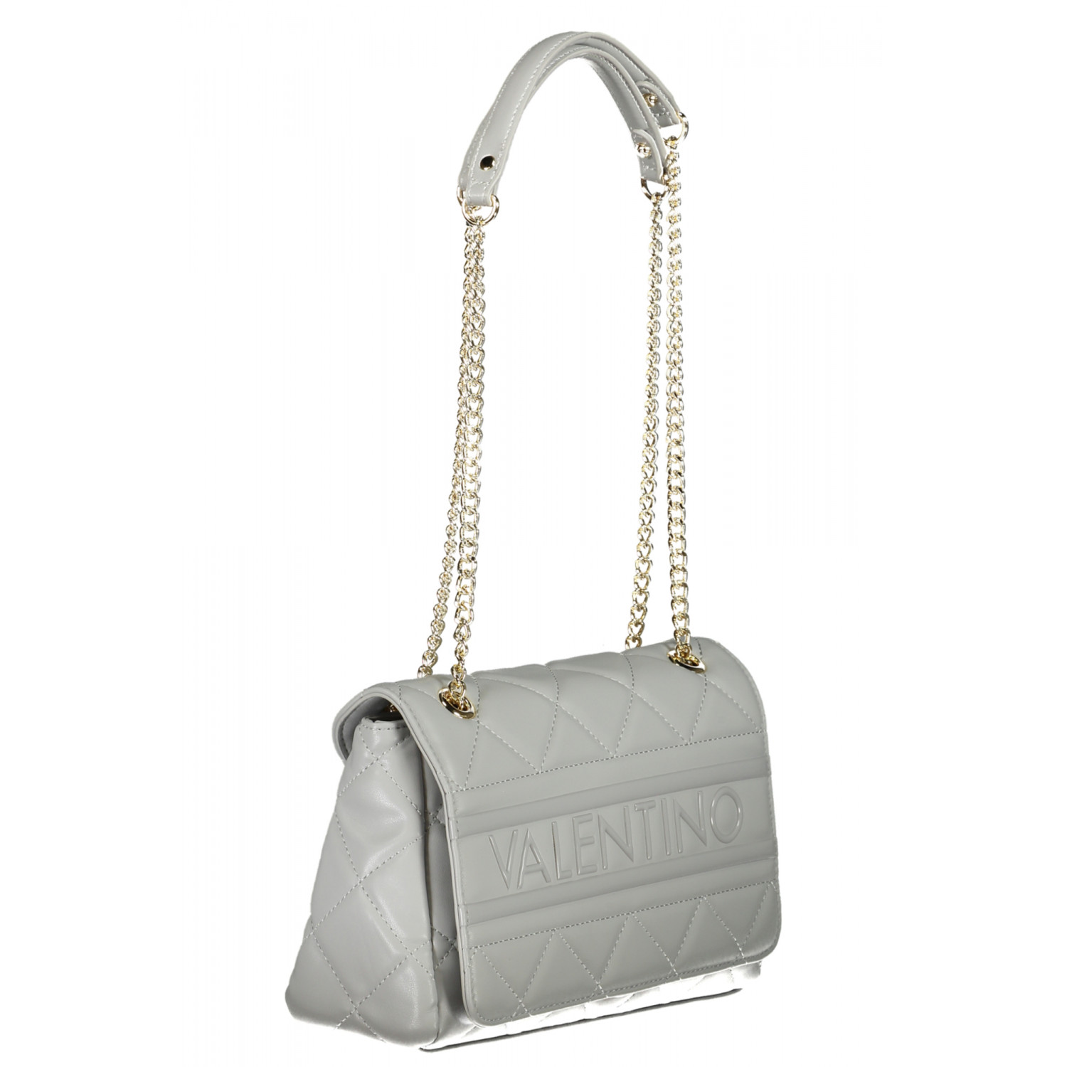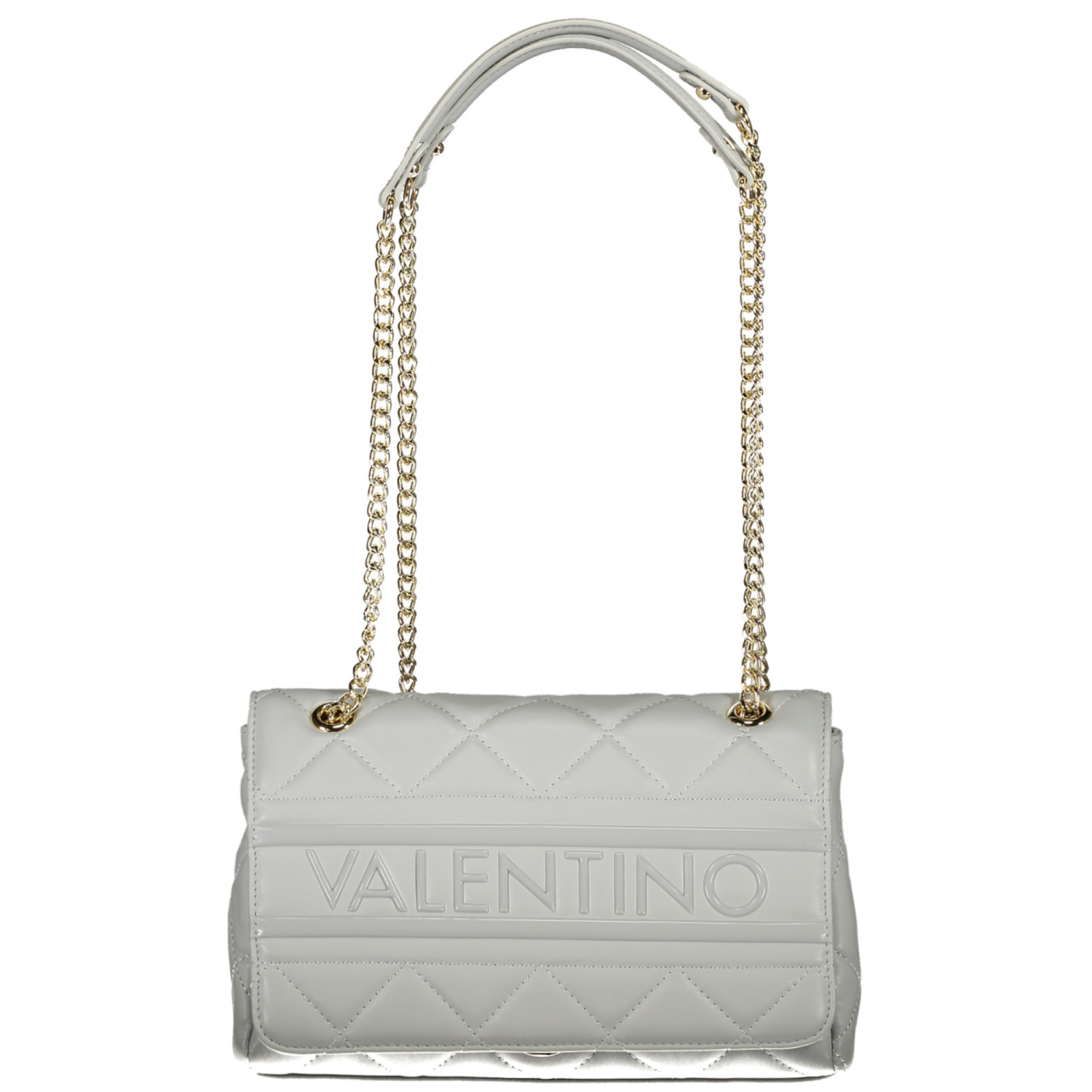 BORSA 2 MANICI A SPALLA CON CATENA, 2 TASCHE INTERNE, CHIUSURA CON ZIP E BOTTONE, DETTAGLI A CONTRASTO, LOGO