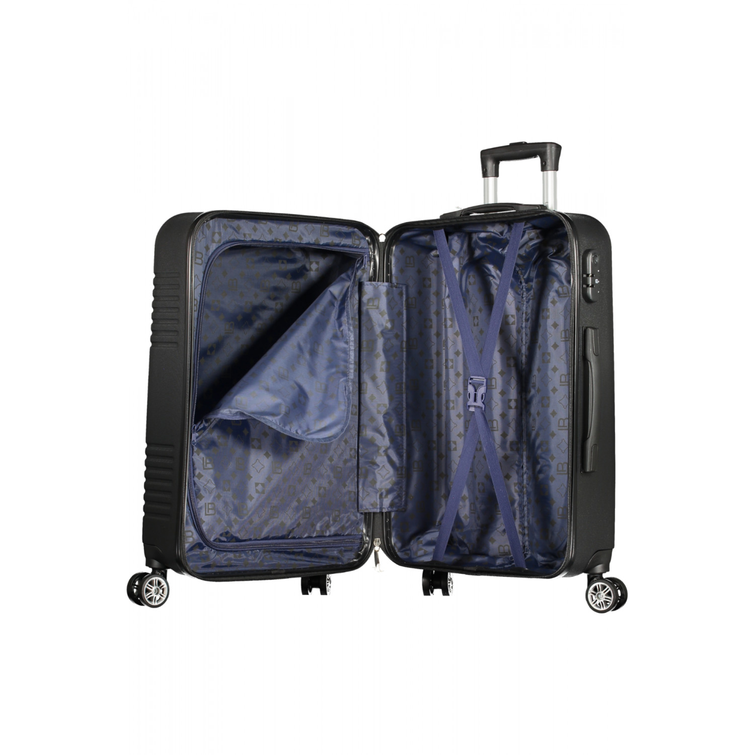 SET 3 TROLLEY, 1 MANICO, 1 MANICO RETTRATILE, 4 RUOTE, 1 SCOMPARTO CON CINGHIE FERMA ABITI, 1 TASCA PORTA OGGETTI CON ZIP, CHIUSURA CON ZIP, LUCCHETTO COMBINAZIONE, LOGO DIMENSIONI S: 51x35x20 M:63x40x25 L:73x45x30