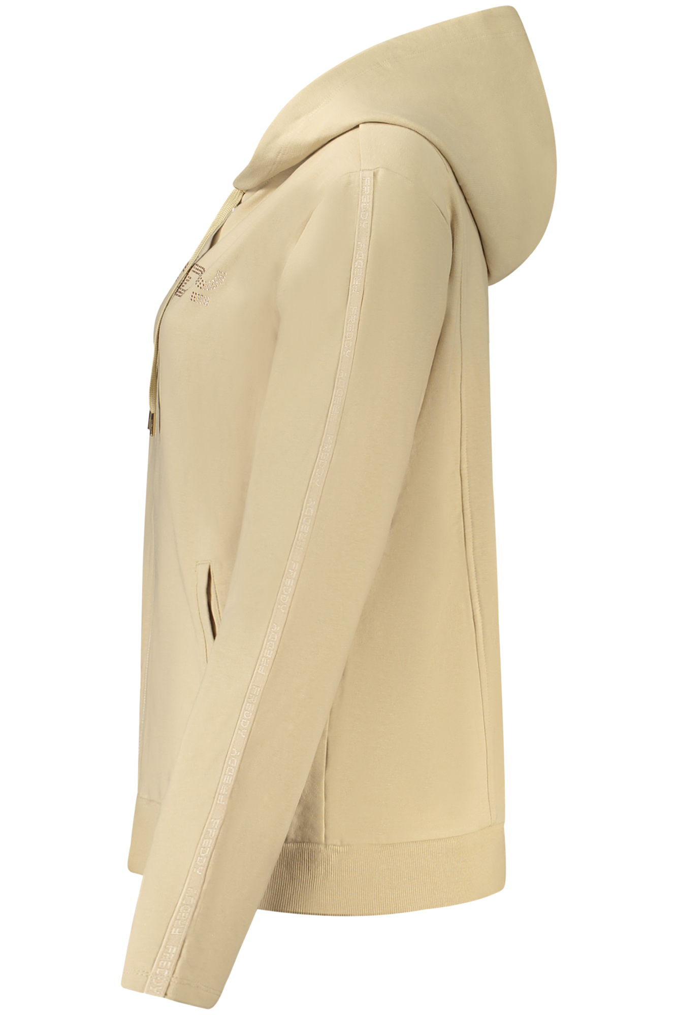 FELPA MANICHE LUNGHE CON CAPPUCCIO, FELPATA, 2 TASCHE, ZIP, APPLICAZIONE STRASS, LOGO