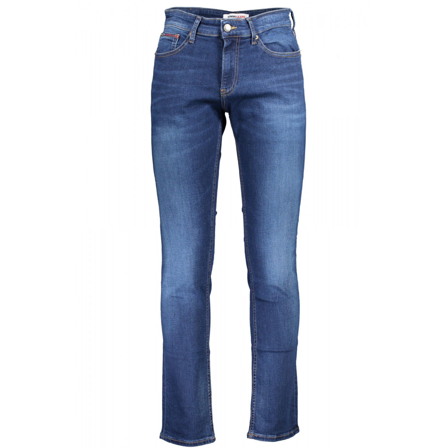 JEANS 5 TASCHE, SCANTON SLIM, EFFETTO SLAVATO, BOTTONE E ZIP, RICAMO, LOGO, 20% REPROCESSED COTTON