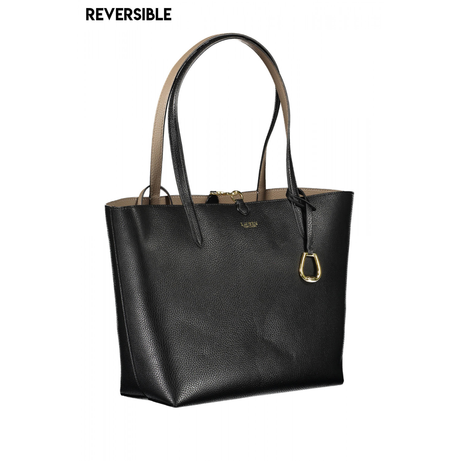 BORSA 2 MANICI A SPALLA REVERSIBILE, POCHETTE INTERNA REMOVIBILE, CHIUSURA CON MOSCHETTONE, LOGO