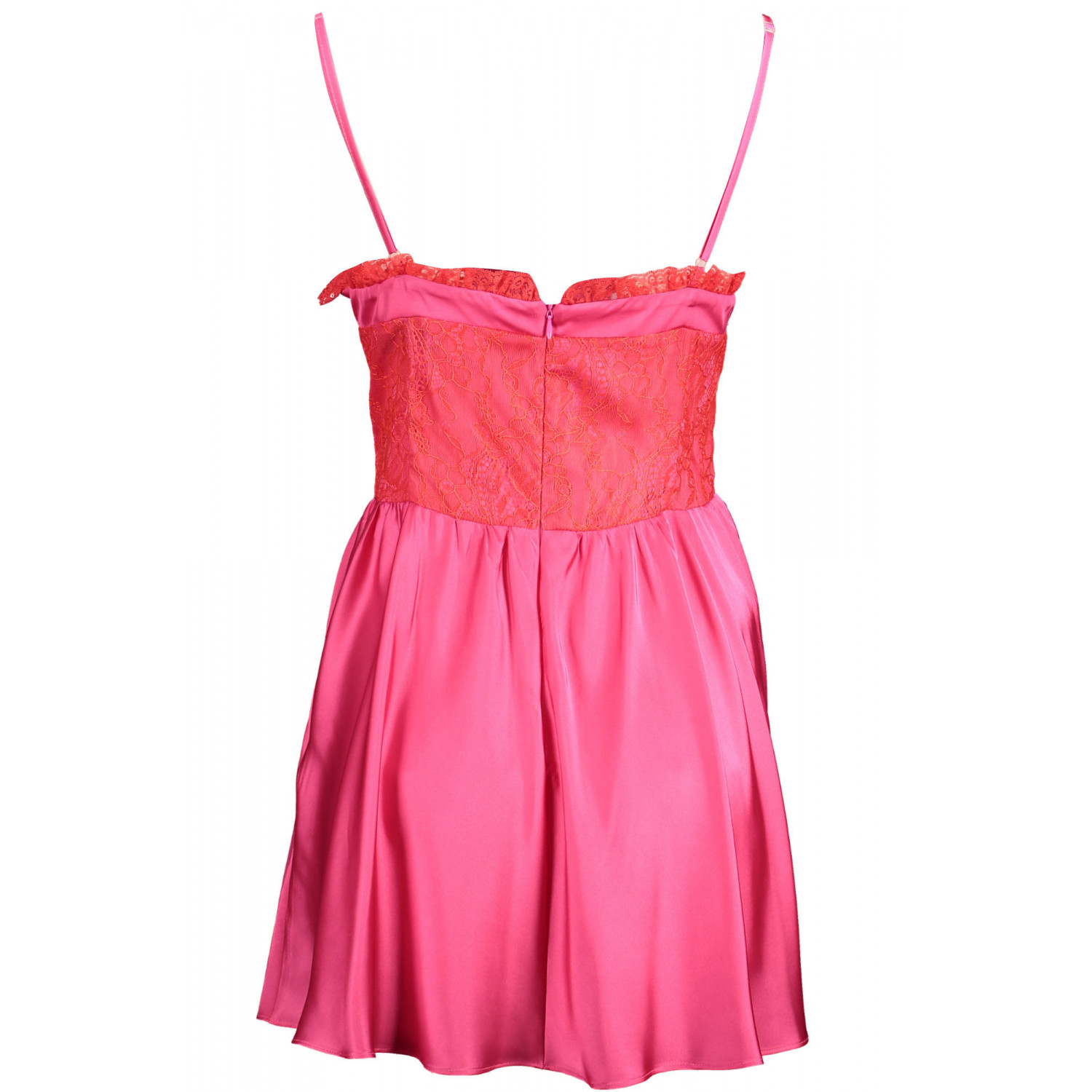 ABITO CORTO, INSERTI IN PIZZO, SCOLLO A "V", SPALLINE STRETTE REGOLABILI, LOGO